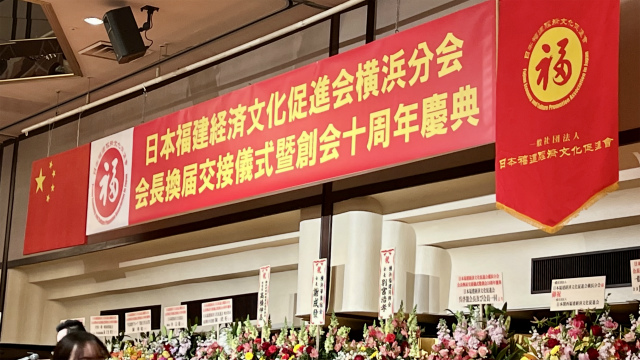 庆典当日,数百位福建老乡和相关人士齐聚横滨玫瑰酒店,一起见证陈宜华会长和游群会长完成交接,共同迎接协会10周年的到来。参加庆典的嘉宾有:中国驻日本大使馆公使衔参赞兼总领事陈巍、参赞赵钢、领事王宝峰,印尼福建籍著名华侨林文光,东京华侨总会会长陈隆进,横滨华侨总会会长谢成发,东京留日同乡会会长谢忠勇,日本福建经济文化促进会东京总会会长吴启龙,关西中华总商会会长魏鹏程,福建总商会会长山口信一等。